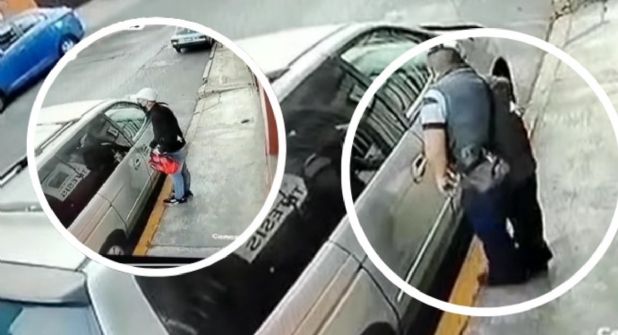 En el video se ve primero a un sujeto vestido con pantalón de mezclilla, playera tipo polo y chaleco negro. Al pasar sobre la banqueta junto al auto, forcejea la puerta del copiloto con una herramienta que saca de su bolsillo. Después cruza la calle y se ve cómo camina con otro sujeto y posteriormente se queda parado del otro lado de la calle.