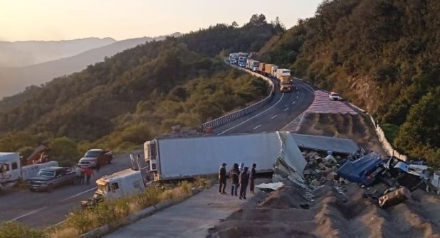 El percance ocurrió a la altura del kilómetro 234 de la citada vía, cuando, según reportes, una unidad Kenworth, cargada con frutas y verduras, habría presentado fallas mecánica y entró a la rampa de emergencia, pero terminó volcando, momento en que entraba a la misma rampa otro tractocamión Kenworth sin frenos, el cual lo chocó.