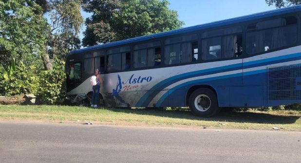 Tras el impacto, el médico salió despedido de su vehículo y terminó a un costado de la carretera, mientras que el autobús de pasajeros salió hacia el lado contrario y terminó chocando contra unos cafetales.