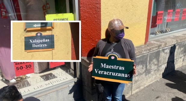 La artista xalapeña colocó este lunes 30 de enero una placa para “renombrar” la calle Xalapeños Ilustres por las de Xalapeñas Ilustres, que busca revalorizar a las mujeres, que también forman parte de la historia.