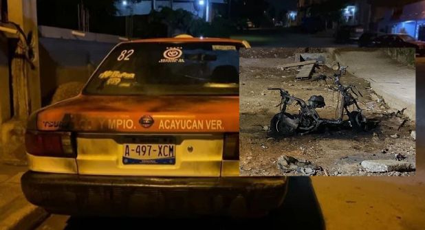 El primer ataque se registró sobre la calle Jesús Carranza entre Juan Sarabia y Belisario Domínguez en el barrio Nuevo, cuando un par de sujetos le prendieron fuego al taxi 82 que se encontraba estacionado, para después huir con rumbo desconocido.