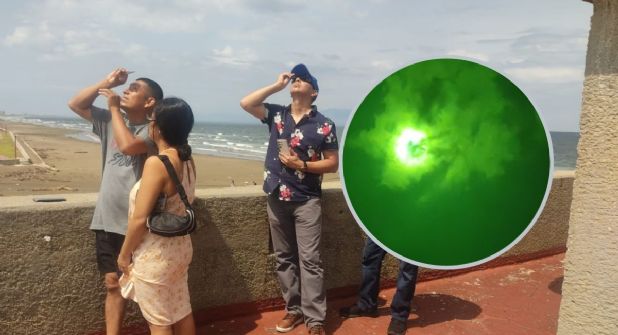 El municipio del sur de Veracruz, familias salieron de sus casas al malecón de la ciudad para ver el eclipse. Con dispositivos como filtros para ojos, y cámaras, menores y adultos disfrutaron del eclipse solar alrededor de las 11:00 de la mañana.