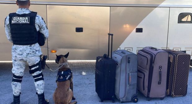 XALAPA, VER.- 4 maletas que en un interior contenían paquetes de mariguana, fueron decomisados al interior de un autobús de pasajeros, cuando fueron inspeccionados por autoridades y binomios caninos de la Guardia Nacional sobre una carretera del norte de México. El autobús procedía de Jalisco y viajaba en dirección al estado de Veracruz.