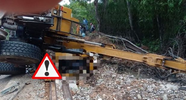 LAS CHOAPAS, VER. – Un operador de maquinaria pesada que laboraba en los trabajos de rehabilitación de la ruta alterna del Tren Interoceánico murió aplastado, la tarde de este viernes 17 de noviembre en el municipio de Las Choapas al sur de Veracruz. Fue identificado como Víctor Manuel "N", de 61 años originario del estado de Durango.
