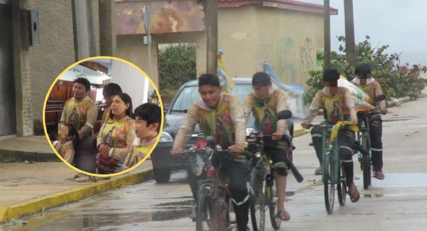 A pesar de la lluvia y el viento, no dejan que la antorcha guadalupana se apague, por día pedalean hasta cuatro horas de forma individual y cuando ya no aguantan se relevan.
