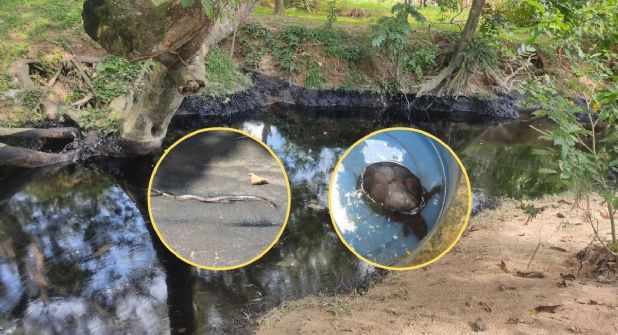 “Las tortugas estaban todas llenas de chapo, por ahí andan otros pochitoques llenos de chapo que ya no pude rescatar, pobrecitos animales, les tocó morir por esta contaminación”, expresa y lamenta.
