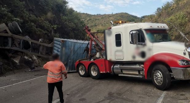 De acuerdo con los reportes, los hechos ocurrieron cerca de las 7:00 horas de este 09 de noviembre, cuando el conductor del tráiler, con número económico 21, volcó debido al presunto exceso de velocidad al que era manejada.