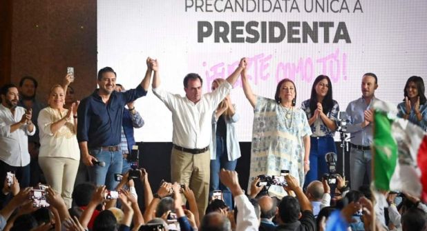 Los militantes del PAN - PRI - PRD se reunieron durante este mediodía del domingo 17 de diciembre para recibir a su precandidata única a la presidencia, Xóchilt Gálvez Ruiz, quien se encuentra de gira por todo el país.