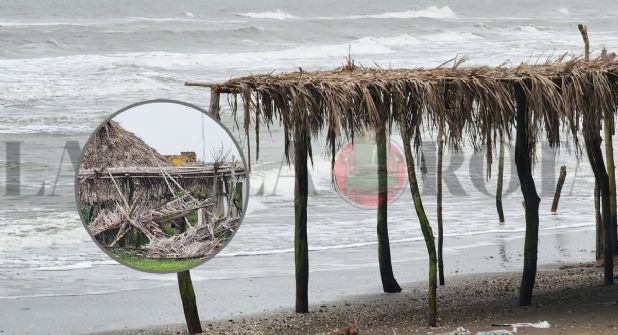 La fuerza del agua que era impulsada por fuertes rachas de viento generó una severa erosión en la zona de playa, que terminó arrasando con las endebles estructuras construidas con varas, madera y palmas, por lo que los comerciantes urgen a las autoridades se lleve a cabo una obra que permita garantizar que el mar no siga ganando terreno, tal como es una escollera.