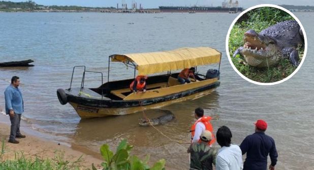 Se trata de un cocodrilo de la especie moreletti, y que tras recibir el llamado, fue capturado por elementos de Protección Civil y bomberos de Coatzacoalcos, en la terminal marítima. Con una lancha y la ayuda de varias personas lograron sacarlo del agua y en tierra lo amagaron para evitar que los atacara, pues en un principio sí mostraba una actitud agresiva.