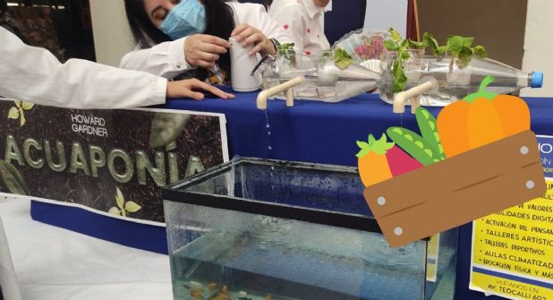 “Necesitamos unos peces de agua dulce que son alimentados para que generen sus heces fecales, con esas heces alimentan las plantas que están dentro de las botellas y el agua, luego las plantas comienzan a generar un proceso de nutrición de abono, al tiempo que comienzan a purificar el agua o filtrarla, para que nueva cuenta regrese el agua a la pecera donde están las especies, pero sale limpia”, explica Valentina
