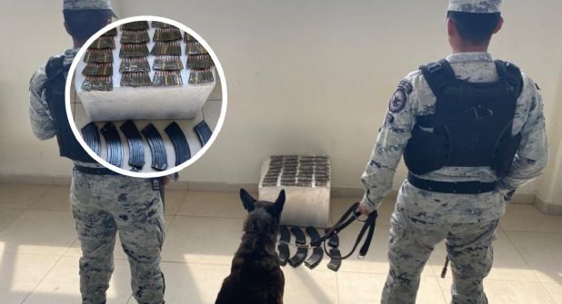 A la par de los cartuchos, en el paquete también se encontraban más de 10 cargadores para arma larga, mismos que fueron detectados por binomios caninos y asegurados por los elementos de la Guardia Nacional.
