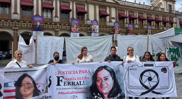Fernanda De Luna Ferral, exhibió una lona con la frase “Alto a la impunidad” y dijo: “Desde aquí hago un llamado para la justicia, para no permitir que maten la memoria de María Elena Ferral, porque a ella la mataron hace tres años. Su muerte fue por su labor periodística y mientras no haya ninguna sentencia condenatoria contra los presuntos responsables no podemos decir que hay justicia. Mataron a una pero nos hirieron a todos”.