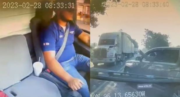 En otro de los clips difundidos de 1:33 minutos de duración se puede ver la misma acción; no obstante, es la cámara delantera, la que graba el camino, la que mostró cómo una camioneta le cerró el paso al tráiler, bajaron al conductor y después se lo llevaron en ese mismo carro con el que lo detuvieron.