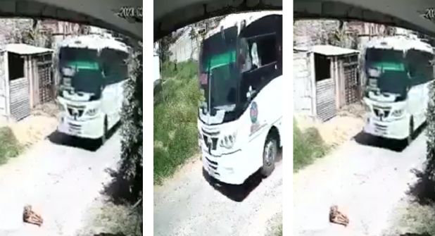 En la cámara de video de seguridad de una casa, quedó captado el momento cuando un autobús, presuntamente de la Línea 8 de Marzo de la ciudad de Córdoba, zona centro del estado de Veracruz, pasó por encima del animal.