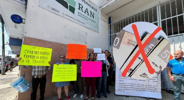 XALAPA, VER. - Trabajadores del Registro Agrario Nacional (RAN) y de la Secretaría de Desarrollo Agrario, Territorial y Urbano (SEDATU) protestaron este martes por la omisión en el incremento de sus prestaciones, que debió resolverse desde el 2020.