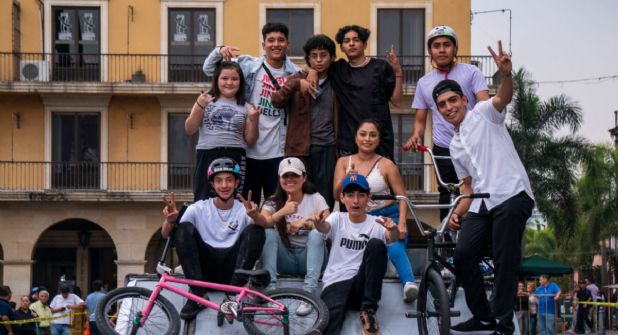 CÓRDOBA, VER.- En busca de fomentar en la niñez y la juventud una alternativa deportiva profesional, este miércoles, se llevó a cabo la primera exhibición de ciclismo acrobático, en la explanada del Parque 21 de Mayo, donde Arturo Contreras Alegría, Jere Rosales “El Cables”, Uriel Sandoval “Sifrox”y Chikis Contreras, deleitaron a los cordobeses con este deporte extremo.