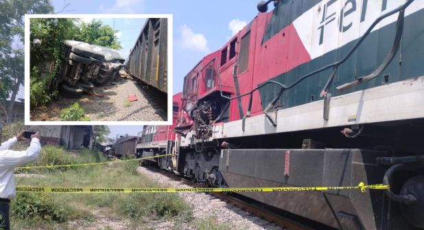 Fue antes de las 10:00 horas de este miércoles, que un tráiler que transportaba un solo remolque, el cual se encontraba vacío, fue arrastrado por más de cien metros de distancia luego de que intentara pasar sobre las vías del tren antes de que pasara el tráiler que viajaba en el sur de Veracruz.