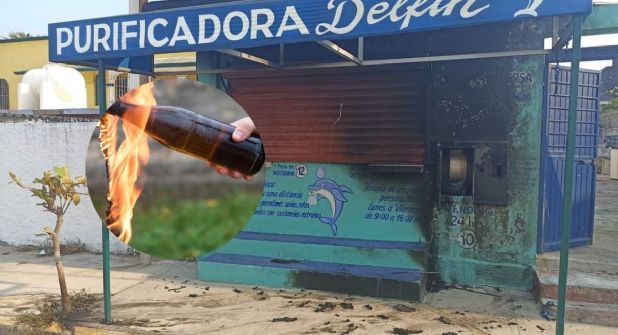 “Super debatido, hoy me hablan temprano de que la purificadora amaneció así, algo que con tanto trabajo se hizo, me quemaron un parte de ella, el vending, le pusieron gasolina, trapo y botella”, se lee la red social del afectado.