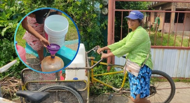 “Ya hay agua para lavar los trastes y la ropa. Sí alcanza, pero hay que venir por más para bañarnos”, grita antes de irse en su triciclo.