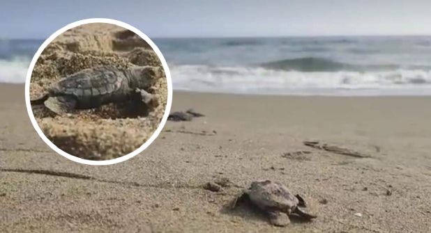 Durante más de dos horas, las nuevas crías de tortugas lora caminaron por la playa para llegar al mar, con ayuda de las personas, incluso formaron un corredor con la arena para facilitar su viaje.