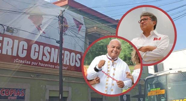 El aspirante a Coordinador Nacional de la Defensa de la Transformación expuso que en su recorrido de Tuxpan a Xalapa contabilizó al menos 100 espectaculares en los que se promueve la imagen del secretario de gobierno Eric Cisneros, así como de otros actores políticos.
