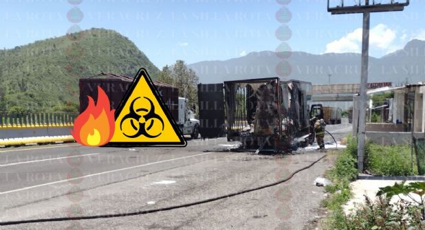 NOGALES, VER. - El incendiiode un camión tipo torton, cargada con productos químicos, generó movilización de cuerpos de emergencia sobre la autopista Córdoba-Puebla, en el municipio de Nogales, enclavado en la región de las Altas Montañas, durante la mañana de este jueves 13 de julio.