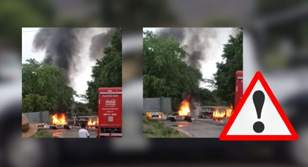Por varias horas se registró un bloqueo vial, debido a la quema de vehículos en exigencia de justicia de las autoridades, así como algunos saqueos de los camiones siniestrados, por parte de los manifestantes.