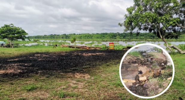NANCHITAL, VER. – Restos de hidrocarburos se derramó sobre las áreas verdes en la zona conocida como La Playita del municipio de Nanchital al sur de Veracruz, alcanzando las orillas del río Coatzacoalcos, lo que generó alarma entre la población. Se trata de un ligero derrame que proviene de una tubería fracturada e inhabilitada de Petróleos Mexicanos (PEMEX) desde hace varios años.