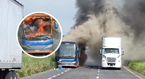 Minutos más tarde el fuego se extendió por toda la unidad, lo que ocasionó que el autobús completo quedara consumido por las llamas.