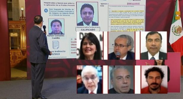 En la sección de “Jueces que Favorecen Delincuentes”, autoridades de Veracruz ocuparon la totalidad de los casos se??alados. Por orden cronológico de cómo fueron mencionados y expuestas sus fotografías, estos fueron las y los jueces que aparecieron en la conferencia “mañanera” desde Palacio Nacional.