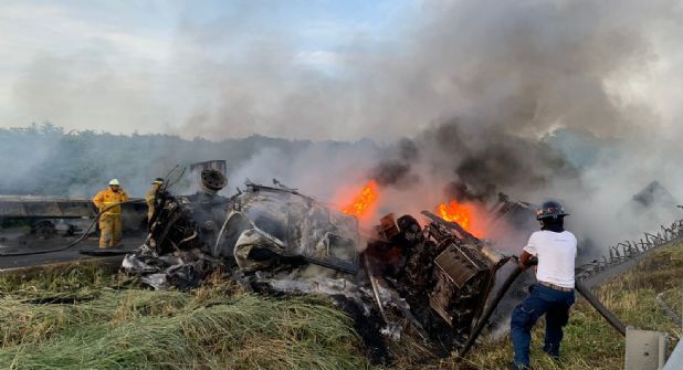 El reporte indica que un tráiler se salió de la cinta asfáltica y terminó volcado, posteriormente fue impactado por otro vehículo de carga que no logró frenar a tiempo, generándose el incendio de ambas unidades.