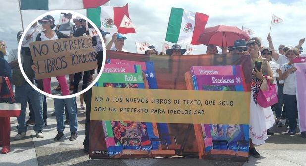 Alrededor de las 10:00 de la mañana el Asta Banderas se llenó de personas que portaban carteles con las leyendas: “No a los nuevos libros de texto, que solo son un pretexto para ideologizar”, “respeto al derecho de los padres para educar a sus hijos” y “no a la entrega ilegal de libros de texto”.