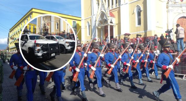 En esta ocasión, el paso de los elementos de seguridad pública se programó para no más de 45 minutos y fue el tiempo en el que los elementos marcharon e hicieron una demostración de actividades tácticas para descender en edificios. Usaron el atrio de la catedral para hacer gala de su formación.
