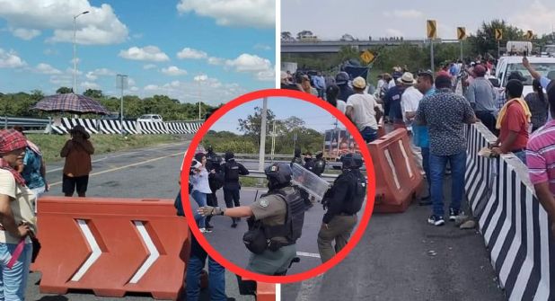 NARANJOS, VER.- Equipos antimotines de la Fuerza Civil y de la Policía Estatal de la Secretaría de Seguridad Pública desalojaron por la fuerza a pobladores del municipio de Naranjos que exigían agua. La tarde de este martes 19 de septiembre, los policías replegaron a los manifestantes, quienes mantenían bloqueada la autopista Tuxpan - Tampico, al norte del estado de Veracruz.