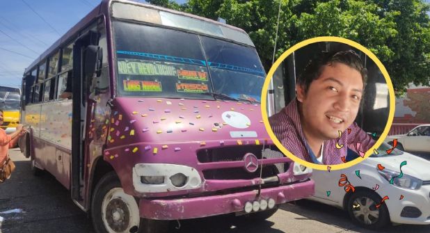 Se trata de la unidad número 95 que cubre la ruta Lomas-Revolución, y que es manejado por Jonathan, quien este miércoles 27 de septiembre cumplió un año más de vida, por lo que sus hijos y esposa decidieron celebrarlo de esta manera.