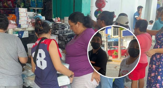 El negocio de Oscar, luce completamente lleno de clientes, comprando cubrebocas en grandes cantidades; las personas temen que escaseen como ocurrió durante la pandemia pasada. Aseguran que actualmente tienen suficientes cajas.