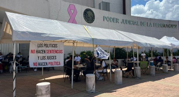 En Coatzacoalcos, la sede principal del PJF, se mantienen los campamentos que instalaron desde hace varias semanas, y organizados en grupos se mantienen sitiando la entrada principal del edificio federal las 24 horas del día.