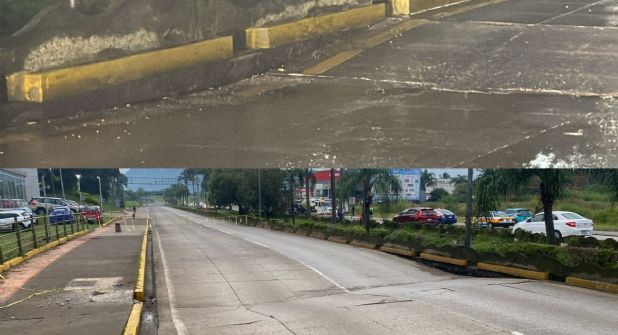 Constatando el hundimiento del concreto hidráulico, autoridades municipales realizaron el cierre de la circulación vehicular, en tanto se tomaban las acciones pertinentes para resolver la situación, pues dicho hundimiento es visible y podría generar un incidente posterior.