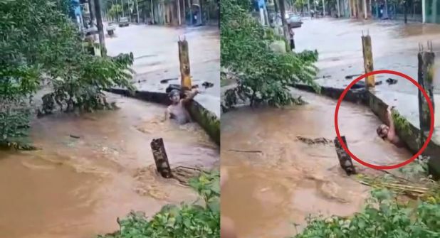 CATEMACO, VER. – A través de redes sociales se ha viralizado un vídeo en donde se ve a un hombre ser arrastrado por la corriente de un arroyo, esto en el municipio de Catemaco, en la zona sur de Veracruz, en donde se han registrado inundaciones y encharcamientos por fuertes lluvias en las últimas horas.