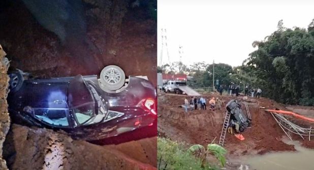 Vecinos de la zona reportaron ante las autoridades correspondientes, sobre un vehículo de color negro que se encontraba al interior del socavón, la mañana de este día. Dicho hundimiento se formó desde la noche del pasado martes 1 de octubre, lo que obligó a las autoridades locales cerrar el paso vehicular.