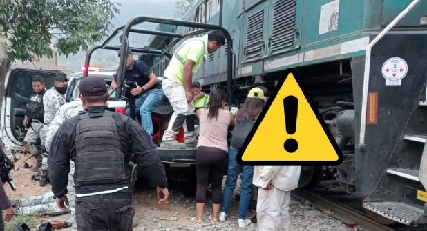 Fue después del mediodía cuando se alertó a los números de emergencia sobre un fuerte accidente, pues una camioneta doble cabina de la Guardia Nacional fue impactada por el tren, esto a la altura de la colonia El Mirador, por lo que rápidamente se trasladaron al punto paramédicos y policías para atender a los lesionados.