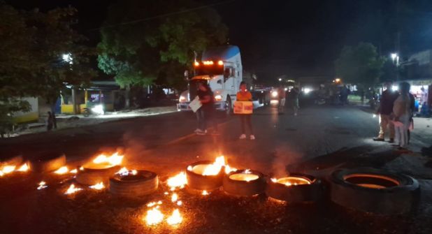 La noche de este lunes 2 de noviembre, decenas de habitantes se apostaron sobre la carretera, a la altura del poblado Campo Nuevo, para manifestarse; atravesaron ramas de árboles y llantas a las que prendieron fuego, impidiendo el paso a todo tipo de unidades.