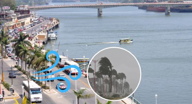 En la zona de Tecolutla, cercano Papantla y Poza Rica, se mantienen velocidades del viento de 19 km/h en promedio, pese a que el pronóstico indicaba rachas de hasta 50 km/h.