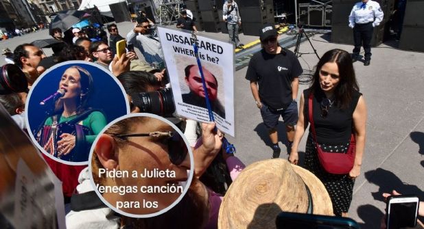 Este sábado 16 de marzo la cantante Julieta Venegas fue abordada por familias de personas desaparecidas previo a su presentación en el Zócalo de la Ciudad de México, luego de que autoridades retiraran los memoriales de desaparecidos que habían colocado frente a Palacio Nacional en forma de protestas para que el gobierno de Andrés Manuel López Obrador atendiera sus peticiones.