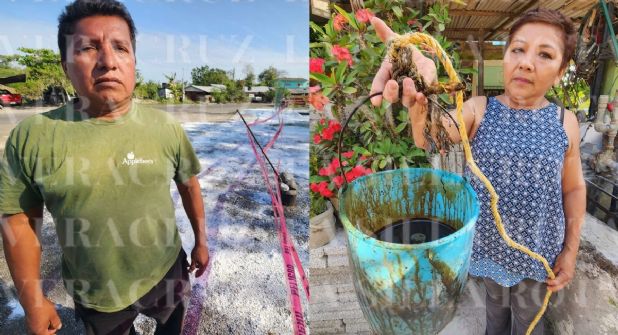 Barrios García, dijo que el año pasado, uno de sus vecinos, sufrió un problema similar, pero lo atribuyó a que vive a unos 150 metros de su casa, muy cerca del pozo Miguel Alemán 25, perteneciente al campo San Andrés, sin embargo, ahora es claro que toda el agua en el subsuelo, se encuentra llena de aceite crudo.
