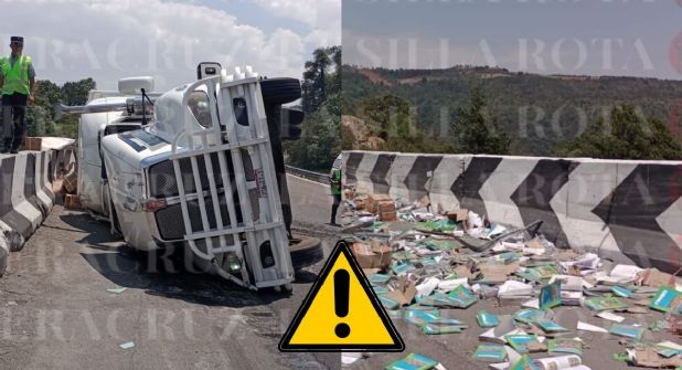 MALTRATA, VER.- La tarde de este domingo 07 de abril del 2024 se registró un accidente, sobre la autopista Puebla-Orizaba, dirección Veracruz, a la altura de las Cumbres de Maltrata. Un tráiler que remolcaba una caja seca y cargado con libros de Textos Gratuito de la Secretaría de Educación Pública (SEP) volcó sobre este tramo carretero, generando el cierre parcial de circulación vehicular.