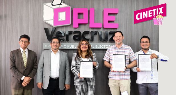XALAPA, VER.- El Organismo Público Local Electoral del Estado de Veracruz (OPLE Veracruz), a través de la Comisión Especial para la Promoción de la Cultura Democrática y Vinculación con Organizaciones de la Sociedad Civil, signó el Convenio de Colaboración con Cinematográfica Orquídea S.A. de C.V., “Cinetix”, con el objetivo de impulsar la participación ciudadana, en el marco del Proceso Electoral Local Ordinario 2023-2024.