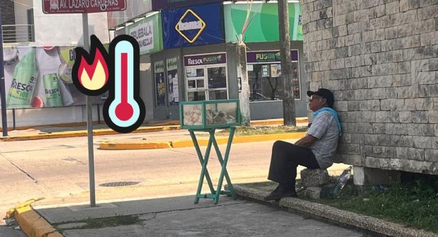 COATZACOALCOS, VER. – Bajo el sol, y con sensaciones térmicas que han superado los 50°C, Enrique sale diariamente para vender sus dulces y pasteles en Coatzacoalcos, municipio ubicado al sur de Veracruz. El adulto recorre cerca de 2 kilómetros diariamente y cuando puede, descansa del bochorno y el sol, bajo la sombra que hace algún edificio.