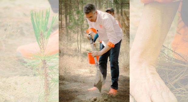 Es así como Delgado Morales se presentó en el paraje Caja de Agua, en el ejido Villa de Perote, acompañado de otros candidatos del partido naranja como Polo Deschamps, candidato al gobierno de Veracruz; Angélica Sánchez, candidata de la segunda fórmula al Senado de la República; Ivonne Trujillo, candidata a la diputación local por el distrito IX de Perote y Sergio Gil, coordinador estatal de MC, para llevar a cabo la siembra de mil arbolitos.